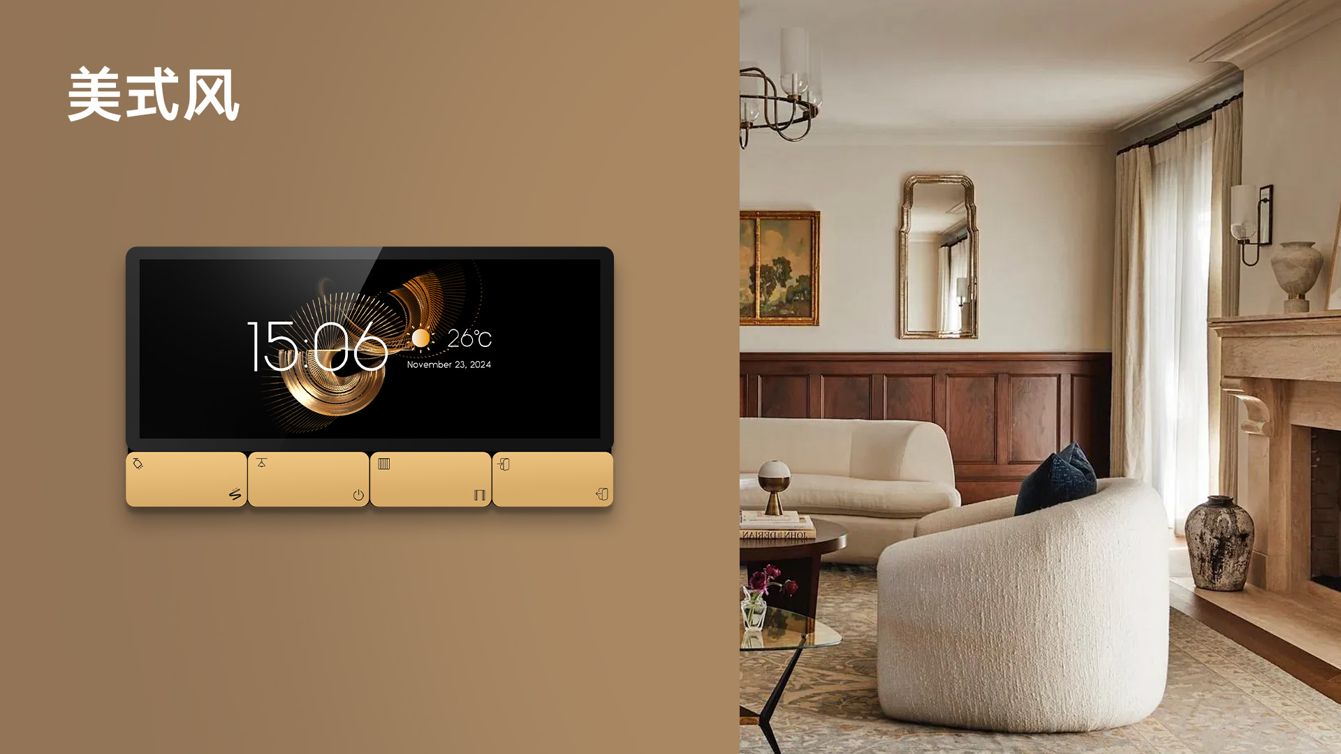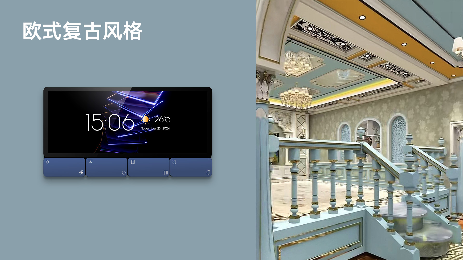 7 款精心設計的首屏壁紙,覆蓋多元家裝風格需求。無論是歐式古風的典雅華麗、現代簡約的利落大氣,還是中古風的復古韻味、美式風的自由隨性,亦或是工業風的硬朗質感、北歐風的清新自然、奶油風的溫馨柔和,都能精準匹配。通過簡單一鍵切換,智能面板即可與家居環境完美融合,輕松打造協調統一的空間氛圍。